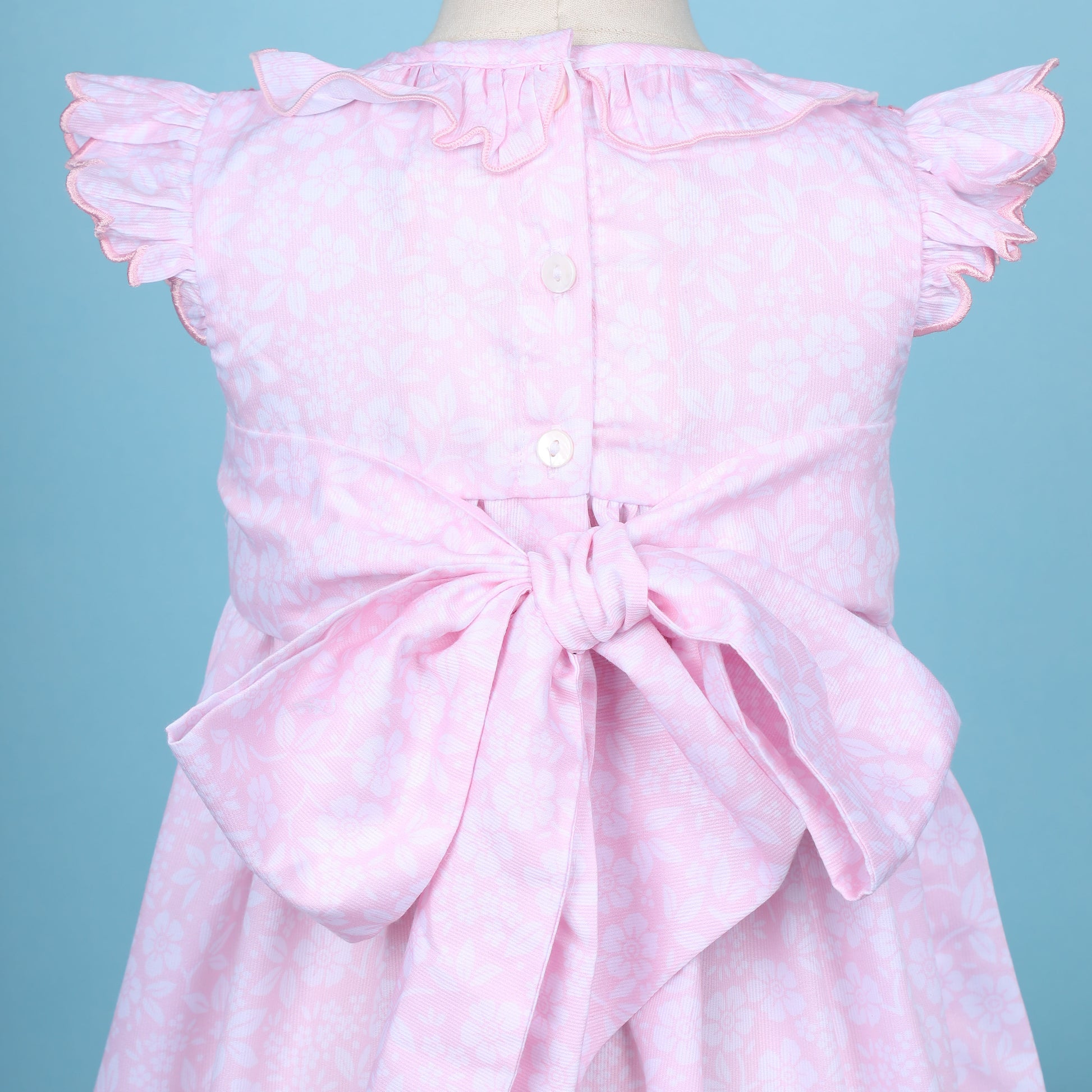 A timeless piece for your little girl’s wardrobe, the Mirella dress features exquisite hand-smocked geometric embroidery across the chest, delicately crafted in a soft pink hue. Designed with charming fabric-covered buttons for a vintage-inspired touch and made from breathable, heirloom-quality fabric for comfort and elegance. Perfect for birthdays, family photos, or special celebrations. Available in sizes 6 months to 6 years.